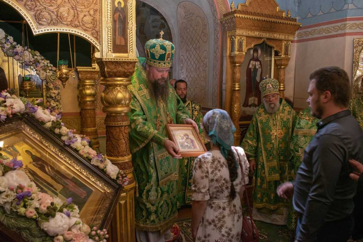 Дкень Петра и Февронии. Муром. После богослужения у мощей святых семейные пары архиерей благословляет иконой