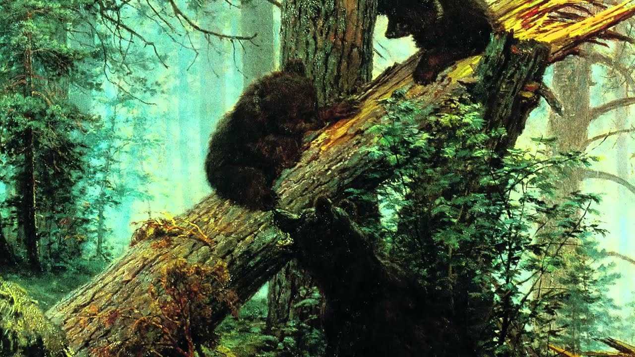 Четыре медвежонка – главные герои картины Ивана Шишкина. Забыв обо всем, они веселятся на поляне с упавшим деревом посередине. Двое из них взобрались на него, третий пытается попасть к ним. А четвёртый не принимает участия в играх братьев, он задумчиво смотрит вглубь леса. Задний план картины – это дремучий лес, окутанный туманом.
