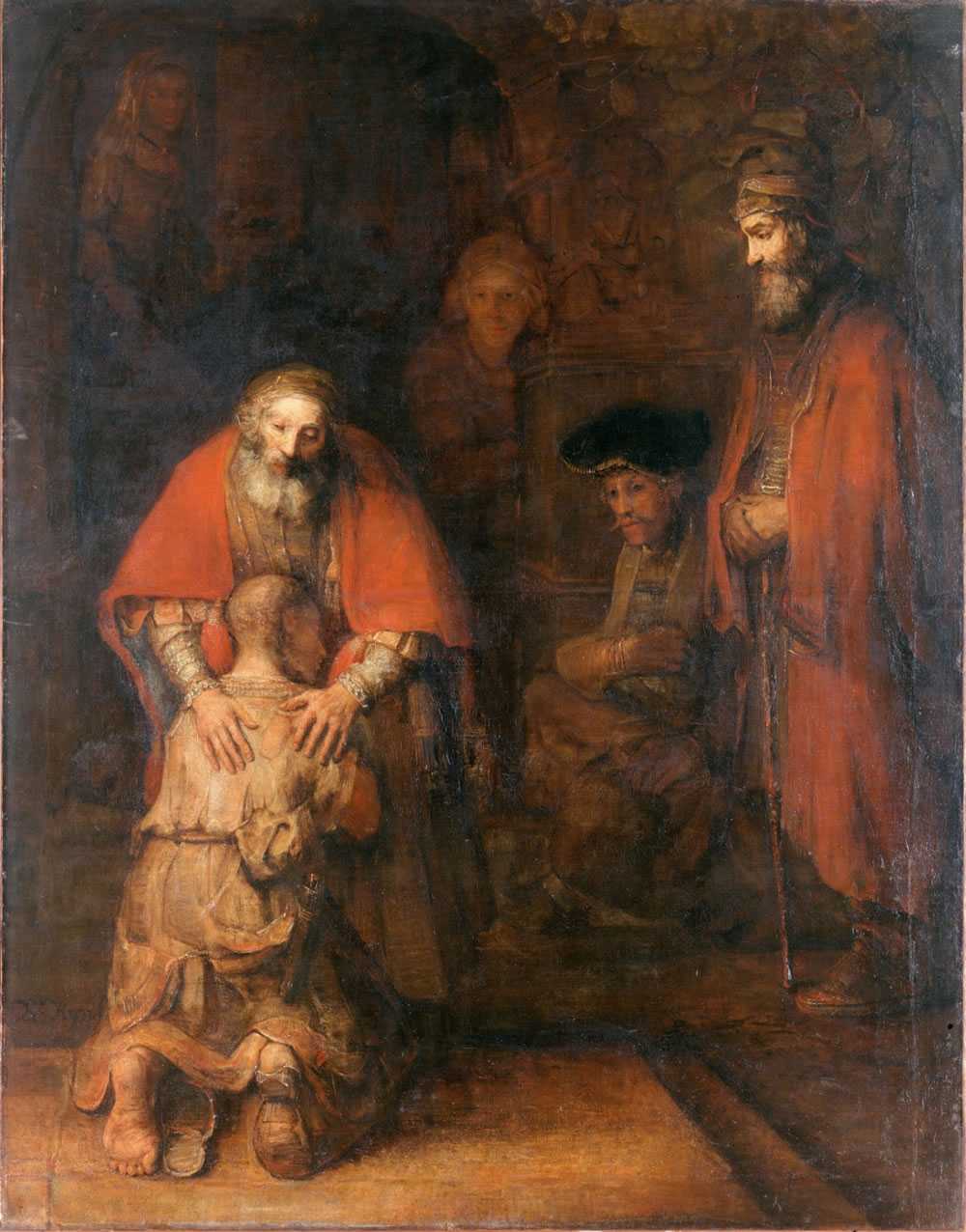 «Возвращение блудного сына» — картина, которую принято считать завещанием гениального художника. Историки искусства обычно датируют её 1663 годом — годом смерти маэстро. Масштаб философского наполнения этого сюжет, и живописное звучание полотна достигают поистине космического размаха.