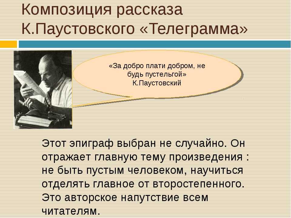 Смысл названия рассказа К.Г. Паустовского «Телеграмма»