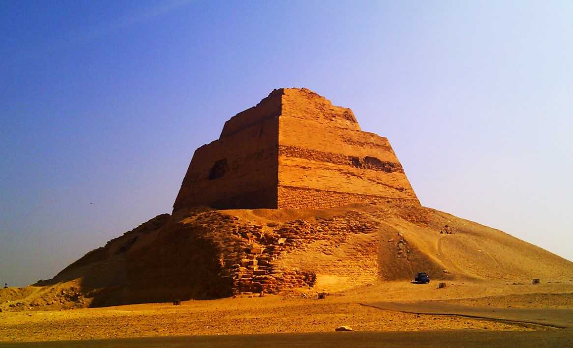 Самая древняя пирамида принадлежала фараону Джосеру и была построена около 2650 года до нашей эры. До Джосера строили мастабы — прямоугольники на один этаж. Джосер начал надстраивать этаж за этажом, и получилась пирамида. Это было первое монументальное сооружение в Египте из камня — до этого строили преимущественно из сырцового кирпича. Кирпич, даже необожженный, сохранялся под открытым небом хорошо, так как в этой стране практически никогда не бывает дождей, особенно в областях, отдаленных от Средиземного моря.