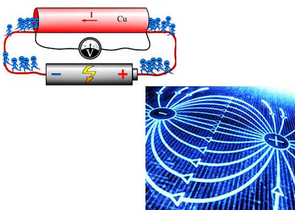 Благодаря приложенному напряжению в цепи устанавливается электрическое поле, которое и придаёт электронам направленное движение. Чем больше напряжение, тем сильнее электрическое поле, а значит и интенсивность потока направленно движущихся электронов.