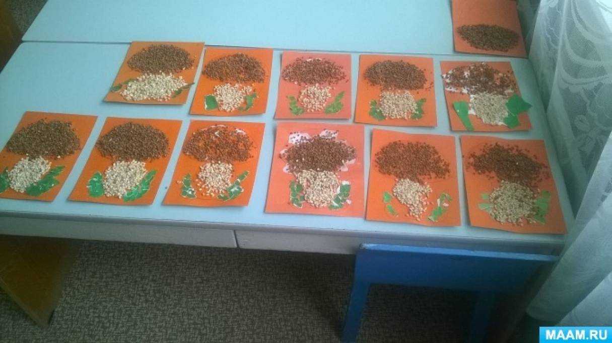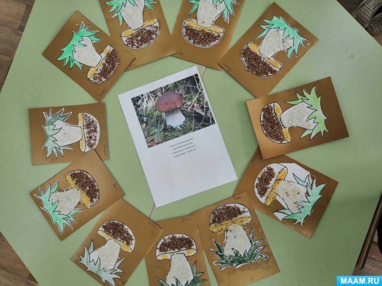 | Конспект НОД «Белый гриб — Боровик» по аппликации из крупы |