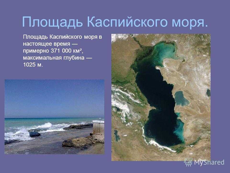 Площадь Каспийского моря. Площадь Каспийского моря в настоящее время примерно км², максимальная глубина 1025 м.