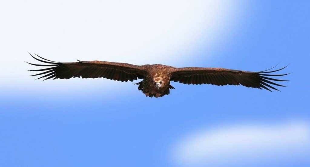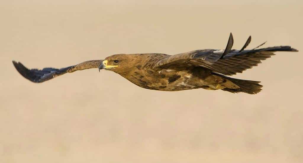 Крыло устроено так, что растопыренные перья по концам крыльев обеспечивают снизу воздушный поток большей силы, чем сверху, что создает большую подъемную силу. Длительный полет без маховых движений обеспечивается именно такой особенностью. Махи птица совершает, когда взлетает, садится или набирает скорость, а балансируя крыльями, она парит в воздухе, зорко наблюдая за происходящим внизу. При сильных порывах ветра, в ураган слегка складывает крылья, растопырив перья на конце.