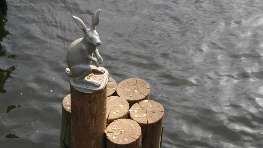 Рядом с Иоанновским мостом располагается еще одна достопримечательность. На деревянной свае здесь установлена фигура Счастливого зайца. У туристов есть традиция закинуть монетку на небольшую площадку, расположенную у ног скульптуры. Считается, что если это удастся, то сбудется желание и будет сопутствовать удача во всем. С моста открывается живописный вид на Неву, Дворцовую набережную. Недалеко располагается Троицкий мост.