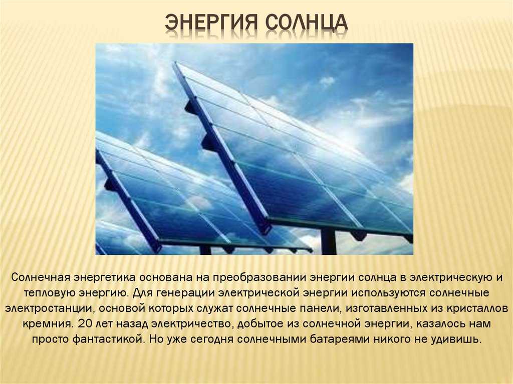 Солнечная энергия сообщение: Солнечная энергия — сообщение доклад