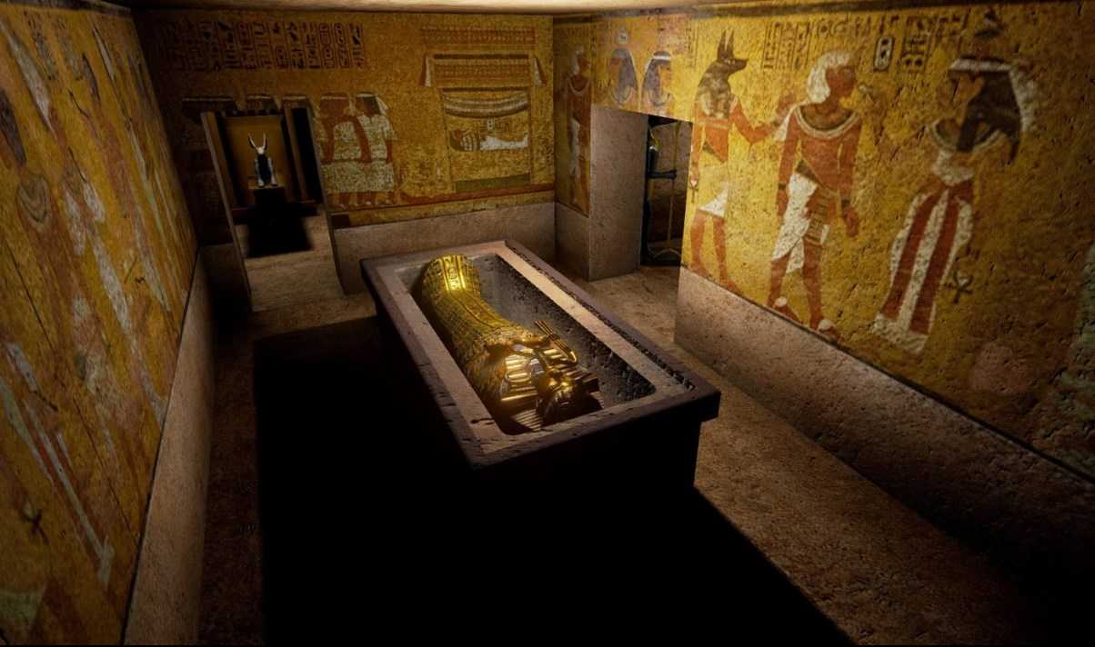 Гробница состояла из 4-х помещений. В двух камерах хранились царские предметы: трон, статуэтки, одежда, оружие. Сокровищница была представлена бесчисленным количеством драгоценностей и ювелирных изделий. Тем не менее, саркофага фараона нигде не было. Ученые подумали, что нашли не гробницу, а всего лишь хранилище. Однако, приглядевшись в сторону статуй, ученые заметили скрытую в стене дверь. Это оказалась погребальная камера фараона. Дальнейшие поиски пришлось приостановить, так как нужно было произвести опись найденных предметов.