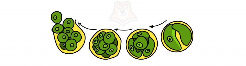 Бесполое размножение одноклеточной водоросли хламидомонады