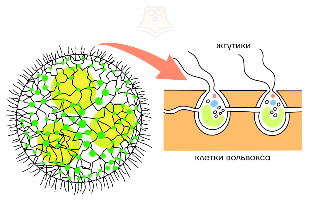 Вольвокс – шарообразный колониальный организм, состоящий из множества жгутиковых клеток.