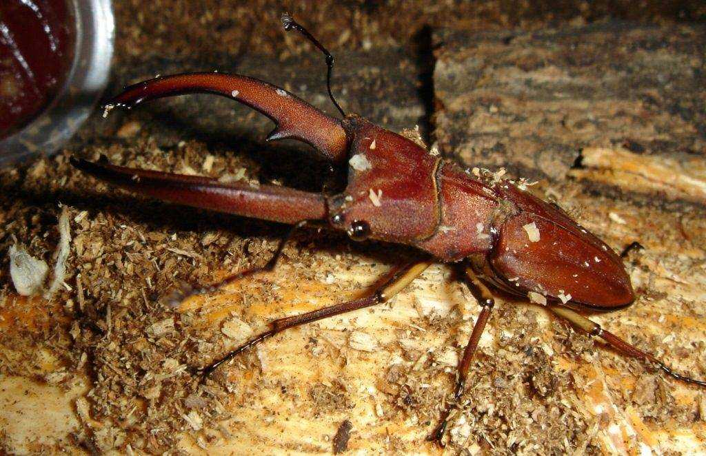 Взрослым особям подобная еда уже не подходит. Чем питается жук-олень? Помимо росы и нектара он кормится соком молодых побегов растений. Ещё великанов в прямом смысле можно назвать любителями браги. Самая большая радость для них найти подходящий дуб, чей ствол в зимнее время потрескался от сильных морозов.