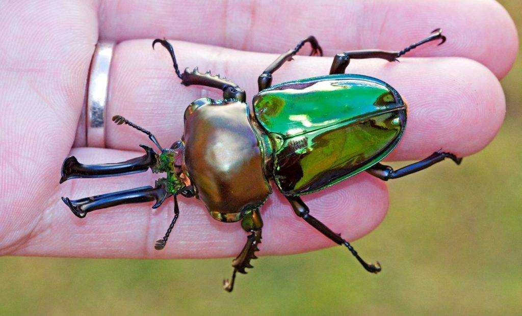 Жук рогач Lamprima adolphinae обитает в Новой Гвинее