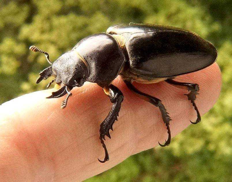 Найденное насекомое оказалось крупным, около 4 см в длину. Для самки, если верить той же Википедии, это нормальный «рост». А вот самцы жука-оленя имеют длинные верхние челюсти, напоминающие рога — отсюда и название насекомого. Многие наверняка видели таких рогачей в живой природе или в научно-популярных передачах. Мне в детские годы они попадались неоднократно. Тело самца лишь слегка крупнее, чем у самки, но еще плюс 3-4 см великолепных «рогов» — и получаем самого большого жука Европы (факт).