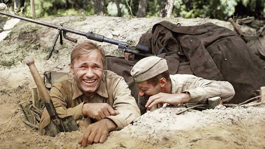 Василий Шукшин (слева) в роли Лопахина на съемках фильма «Они сражались за Родину»