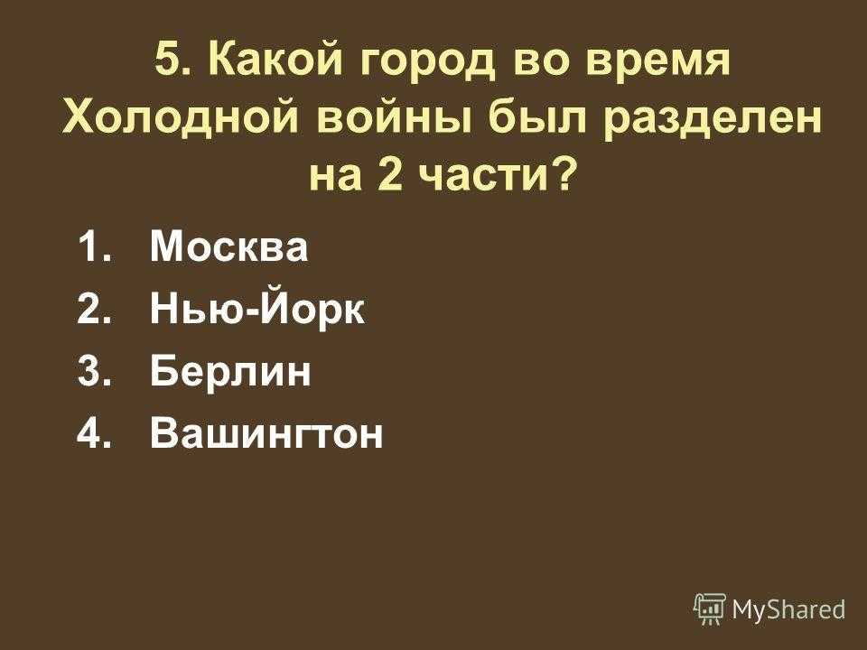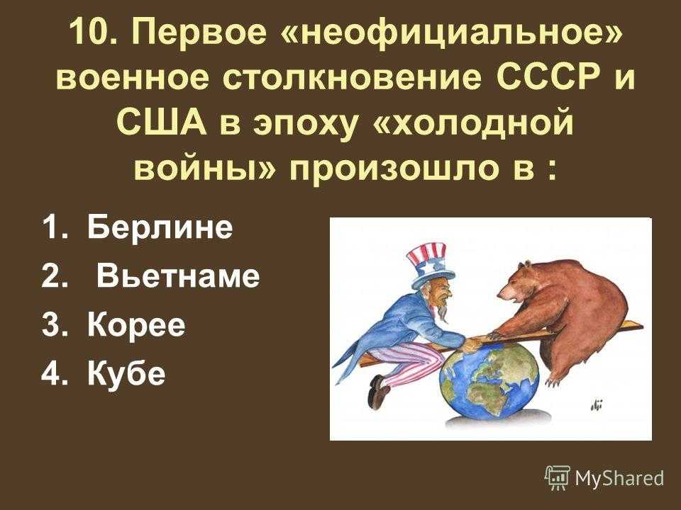 1. Какое положение из названных не относится к характеристике «холодной войны»?
