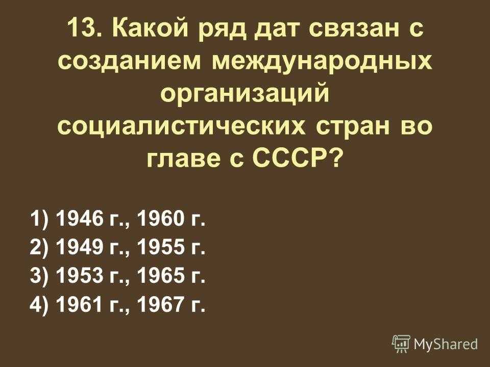 9. Какое положение из названных характеризует политику СССР по отношению к странам соцлагеря?