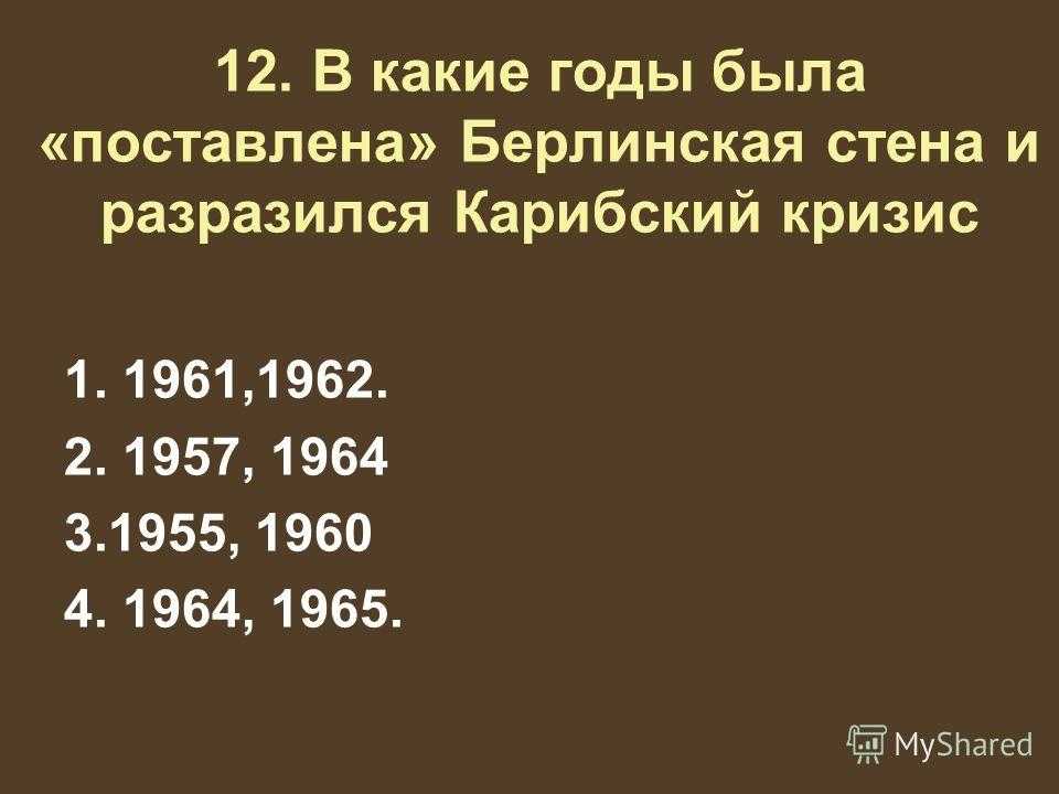 В1. Из перечня событий выберите два не относящихся к периоду «холодной войны» и запишите цифры, под которыми они указаны.