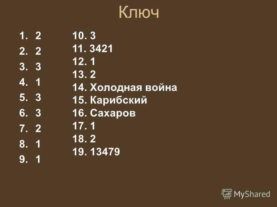 Ответы на тест по истории Внешняя политика СССР и начало «холодной войны» для 11 классаВариант 1