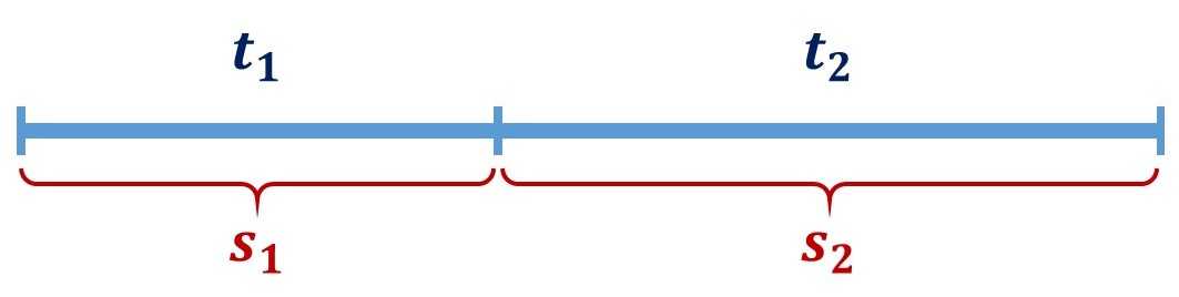 Выразим из этих уравнений неизвестные $s_1$ и $s_2$:$s_1 = \upsilon_1t_1$; $s_2 = \upsilon_2t_2$.