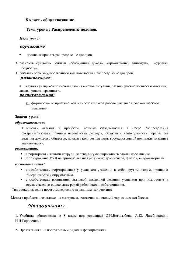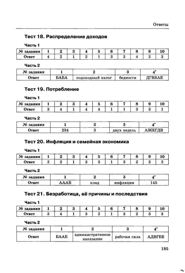 Ответы на тест по обществознанию Распределение доходов для 8 классаВариант 1