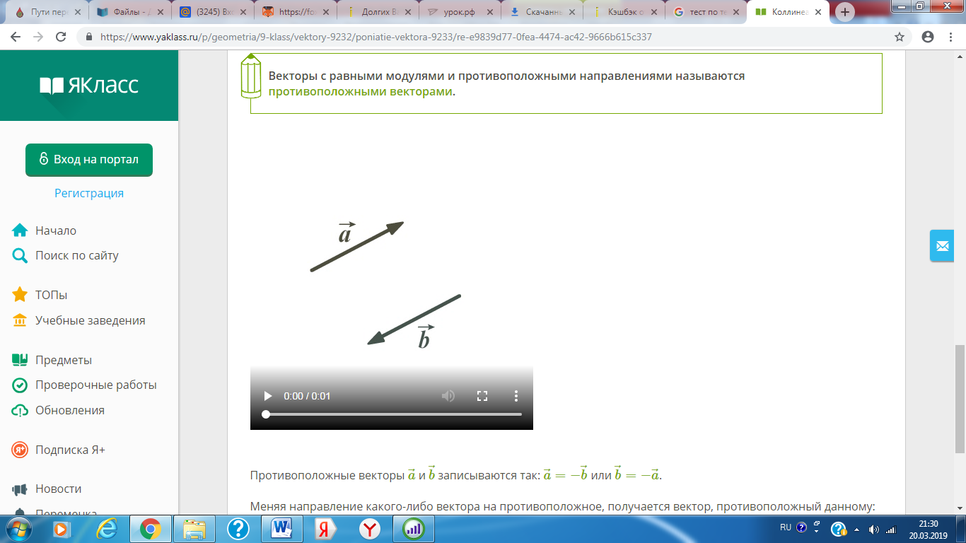 Если два ненулевых вектора коллинеарны, то они могут быть направлены либо одинаково (тогда их называют …), либо противоположно (тогда их называют …).