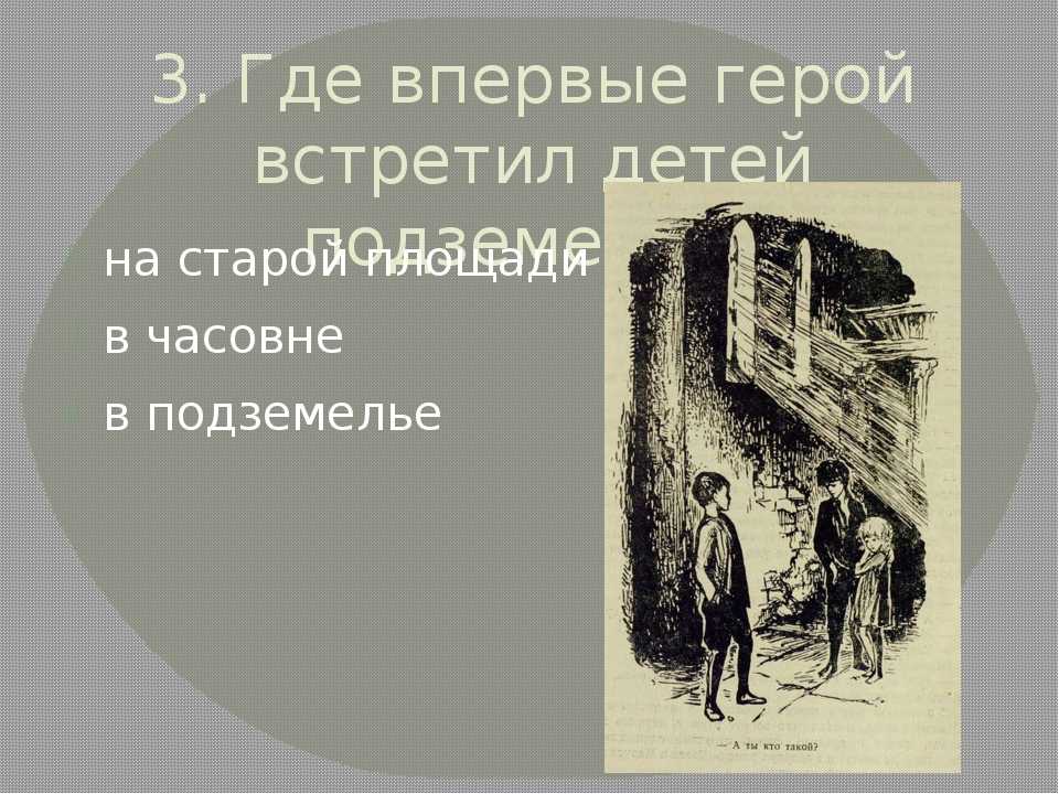 В какую игру играли дети, когда неожиданно в подземелье вошел пан Тыбурций?а) жмуркиб) салкив) догонялки11.Как Вася подбодрил Марусю во время ее болезни? Какая игрушка сестры Сони сделала почти чудо?а) медвежонокб) куклав) мячик12.